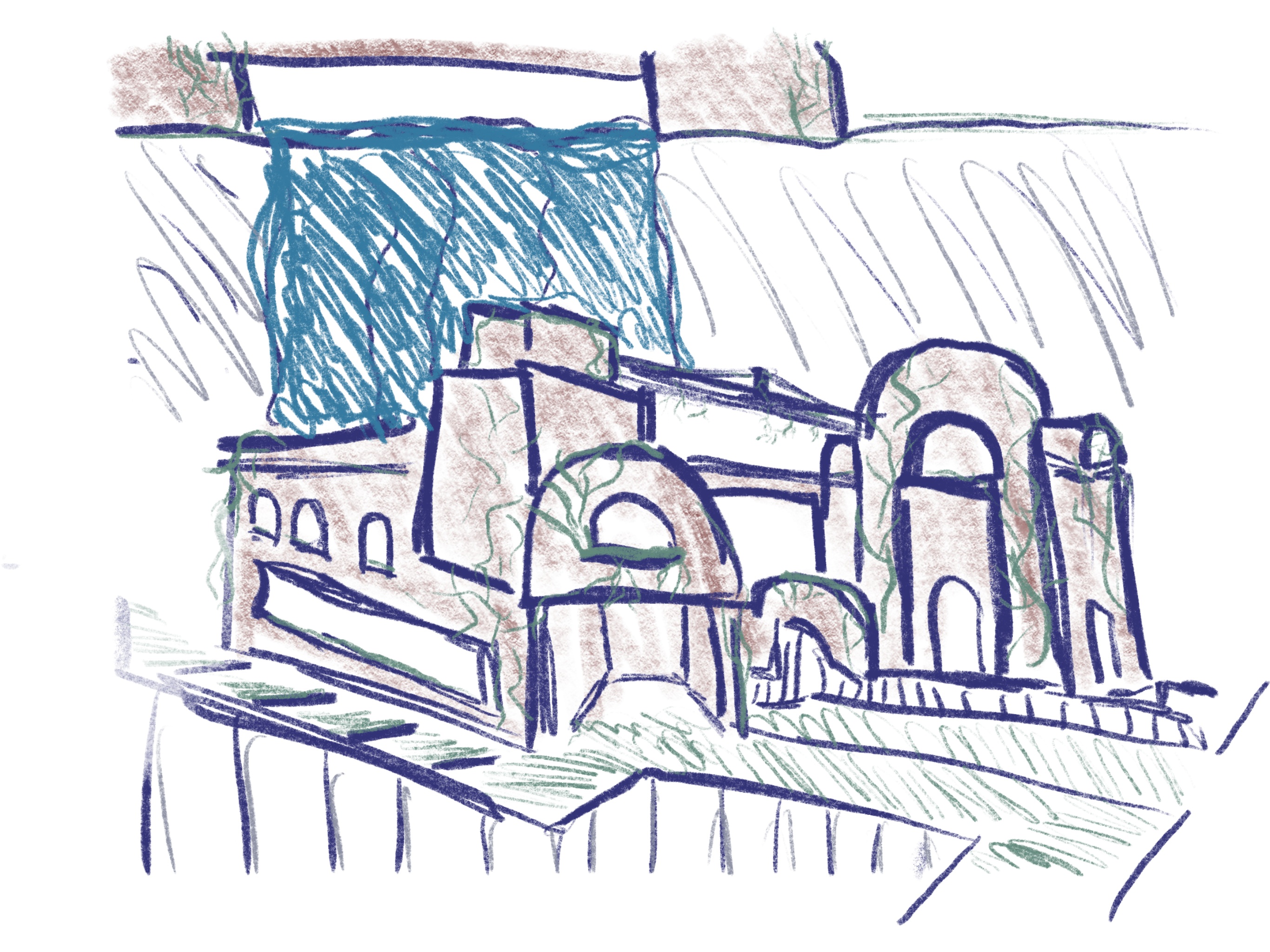 I am using Max's Streets of Constantinople as my inspiration. My scene will feature overgrown buildings, and a huge waterfall in the background which will provide the growning plants with water.