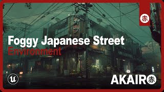 Immerse yourself in a moody, fog-filled Japanese street brought to life with neon signs, rain-soaked surfaces, and richly detailed storefronts. This atmospheric environment captures the quiet tension of a misty night, perfect for cinematic scenes and immersive urban settings.